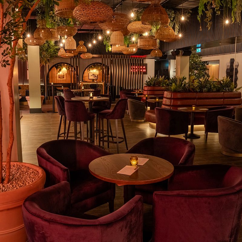 - Stylish, high-energy lounge with Mediterranean-inspired interiors